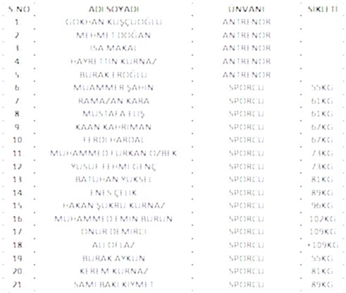 | 1 | Murat KORKMAZ | ANTRENÖR |