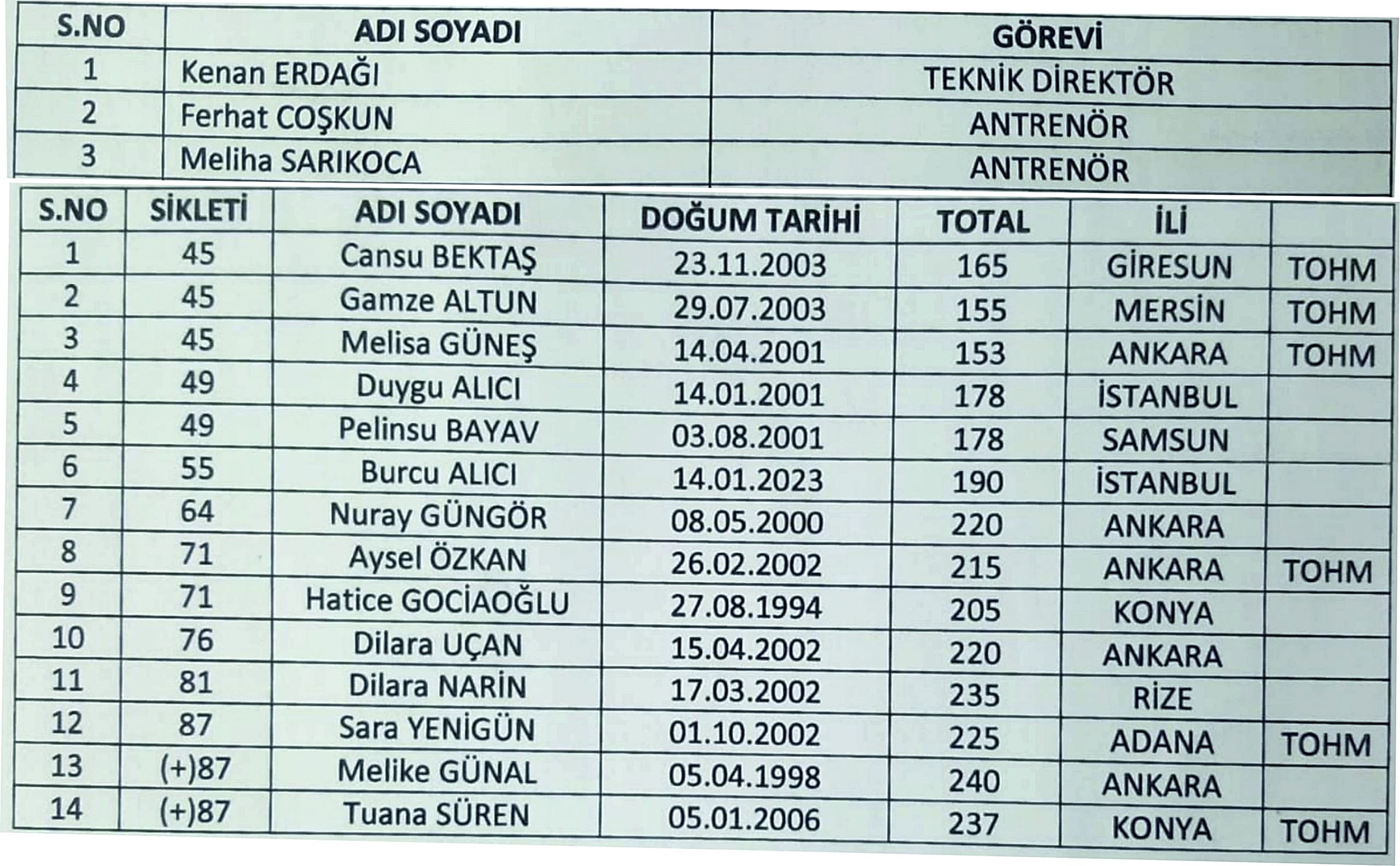 | 2 | Reyhan ELMALI | ANTRENÖR |